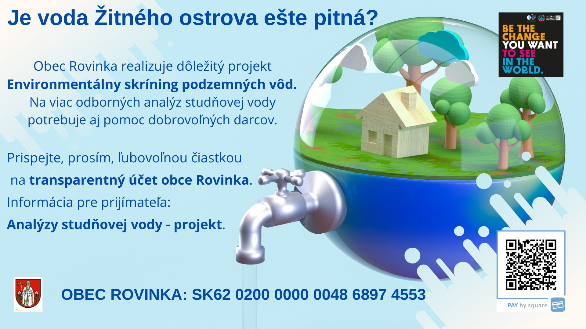 Grant vo výške 10 000 eur použijú obce Rovinka a Most pri Bratislave na ďalší rozvoj spoločného projektu. Tieto prostriedky nám pomôžu zabezpečiť udržateľnosť a ďalšie potrebné rozbory vody pre bezpečnosť našich obyvateľov. Rovnako je stále aktuálna možnosť prispieť symbolickou čiastkou aj z radov občanov či podnikateľov na náš transparentný účet: IBAN SK62 0200 0000 0048 6897 4553.