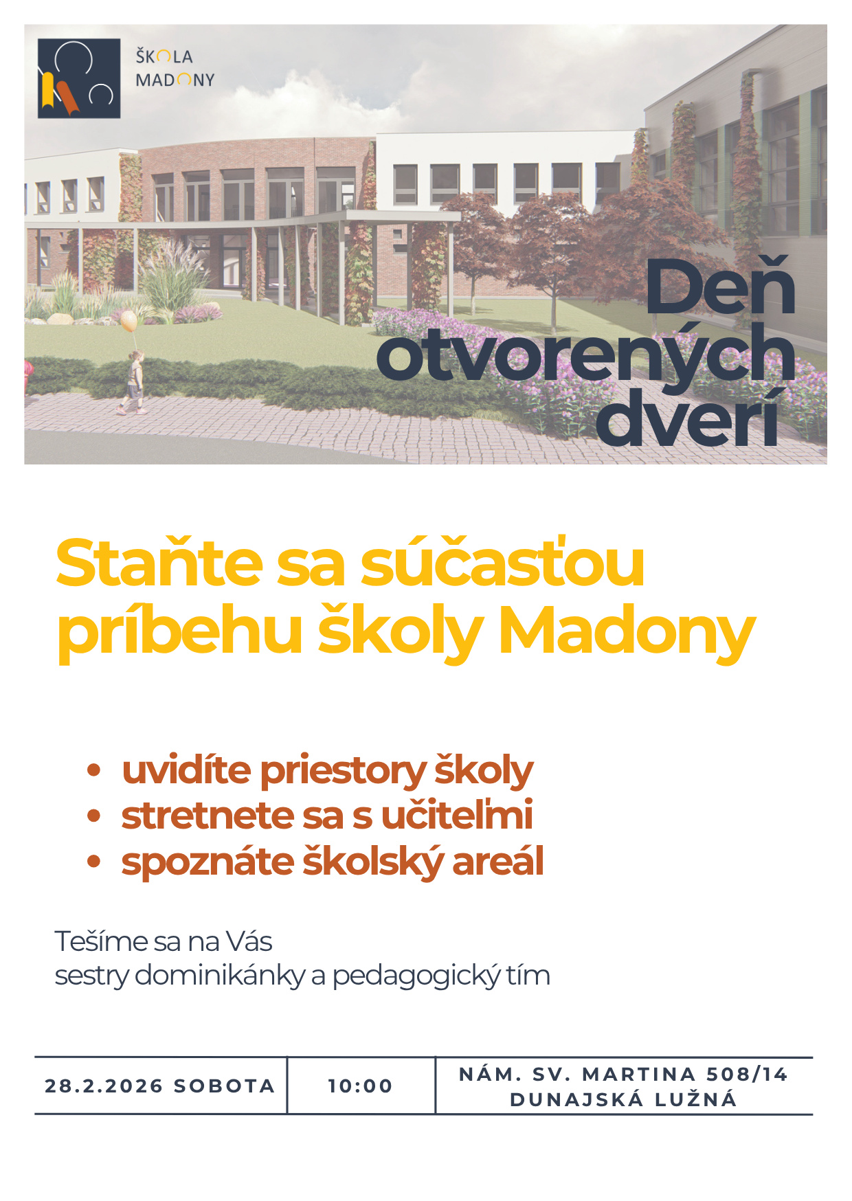 Tešia sa na vás sestry dominikánky a pedagogický tím Školy Madony.